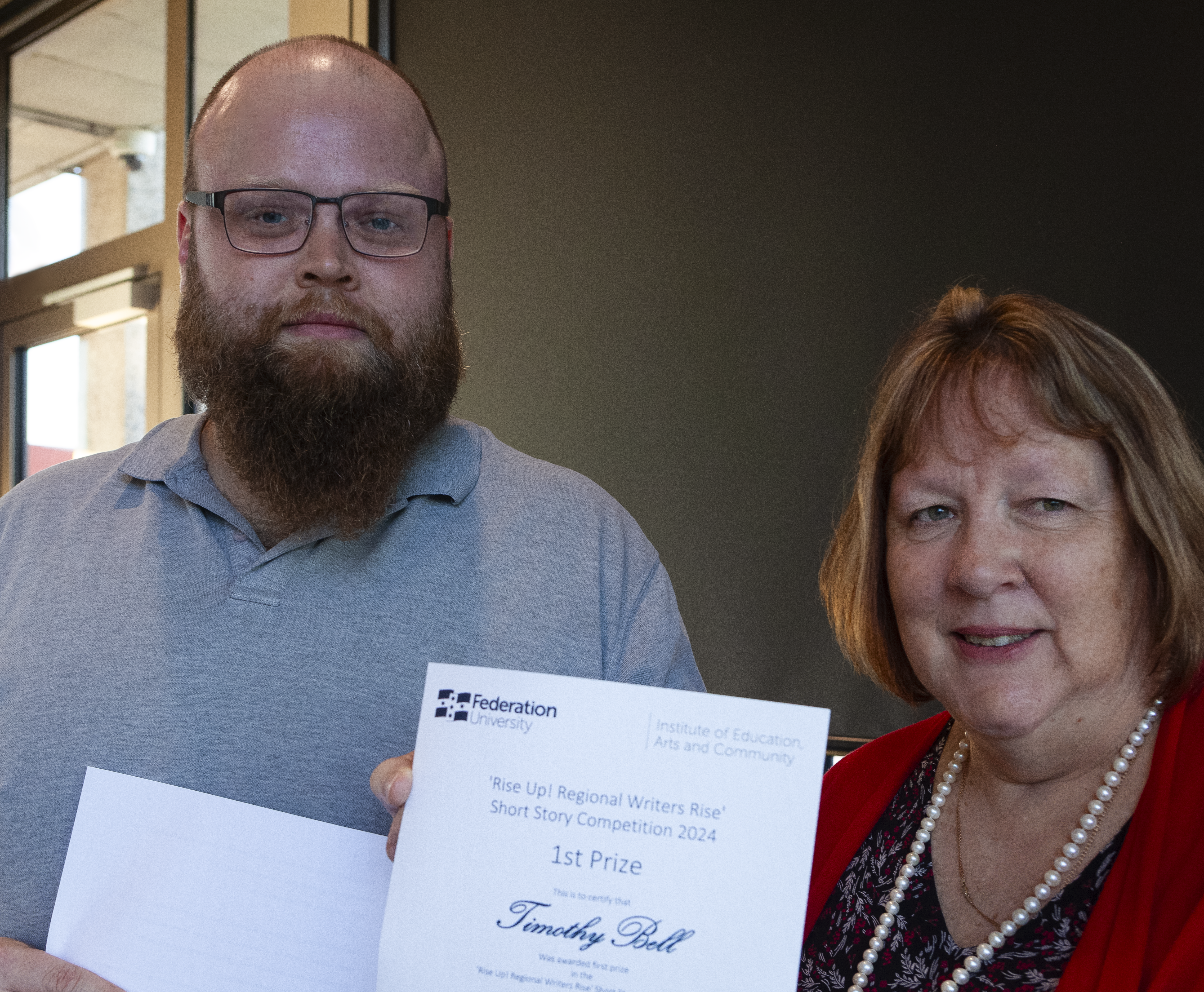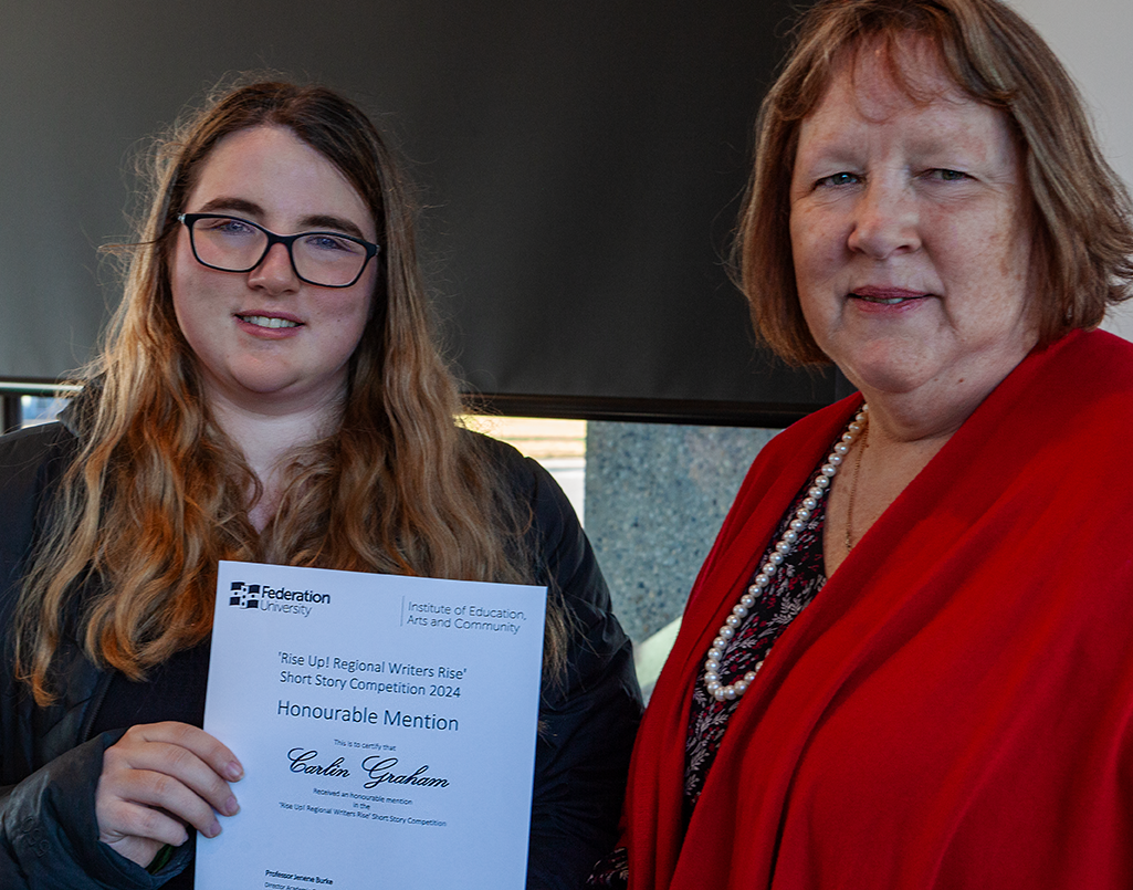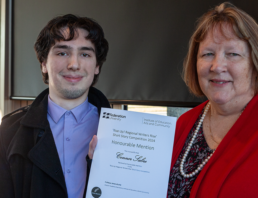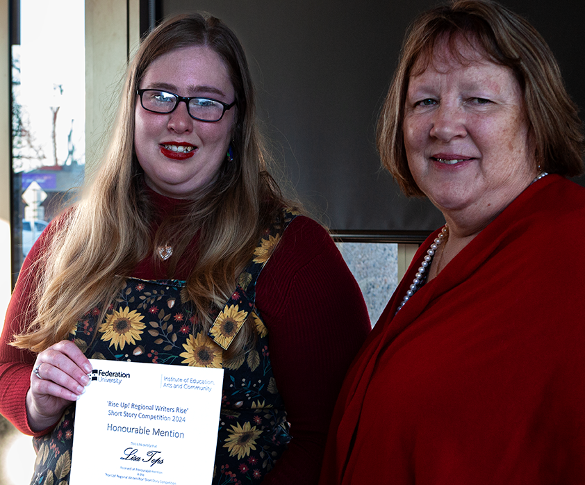 Thank you to all who entered the 2024 ‘Rise Up! Regional Writers Rise’ Short Story Competition. Special mentions, honourable mentions, and the winning stories were awarded at a ceremony on the Sunday of the Regional Writers Rise Festival.